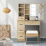 Dressing Table Stool Set Makeup Slide Mirror Drawers 10 LED Bulbs- Natural
