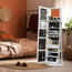• Ultra-Large Capacity: Taller than standard cabinets, it features earring slots, stud holes, necklace hooks, ring slots, compartments, pockets, scarf rods, and three additional shelves